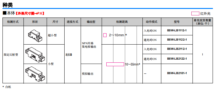 限定反射型傳感器B5W-LB
