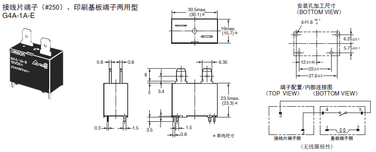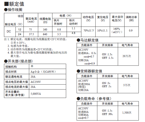 G4A 功率繼電器 實現(xiàn)通電80A、通電、切斷20A的1極小型功率繼電器 ? 實現(xiàn)通電80A、通電、切斷20A的電機負載開閉。小型卻可以實現(xiàn)高容量開閉、高耐久性。 ? 符合UL、CSA空調(diào)規(guī)格,確保絕緣距離。 ? 采用抗干擾性強的高絕緣構(gòu)造。 ? 標準品采用耐焊劑構(gòu)造。 通電80A、通電、切斷20A的1極小型功率繼電器