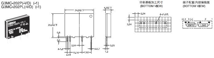小型、纖細的印刷基板用SSR備有強化絕緣型 厚度僅4.5mm,可對應印刷基板的高密度封裝 DC輸入-AC輸出,輸出的適用負載為1A(40℃)、 2A(25℃) 采用印刷基板、端子、散熱板一體化的引線架,以及一體成形,實現了小型化、纖細化