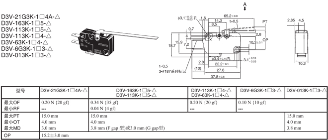 | 針狀按鈕型 | --- | 1.23N {125gf} | D3V-21G-1□4A-△ | D3V-21G-2□4A-△ | D3V-21G-3□4A-△ |