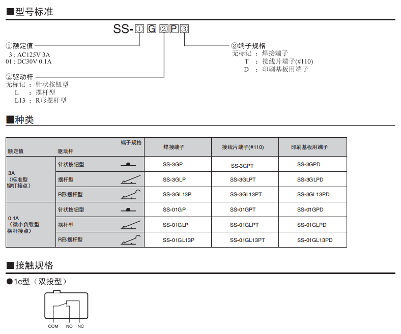 SS-P小型微動歐姆龍開關