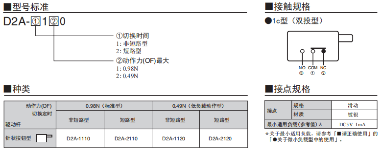 D2A 小型檢測(cè)歐姆龍開(kāi)關(guān)