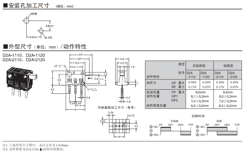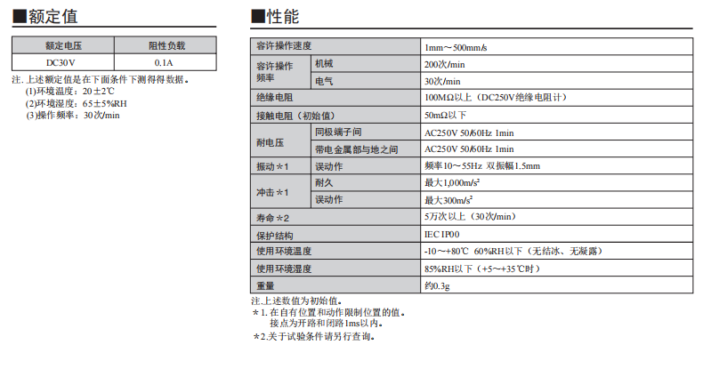 采用按鈕動(dòng)作式的歐姆龍超小型開(kāi)關(guān) 歐姆龍超小型(高6×寬8×深4.2mm)、輕量(約0.3g)、3mm的長(zhǎng)行程。 由于是滑動(dòng)方式,所以短路、非短路的切換時(shí)間可根據(jù)使用用途進(jìn)行選擇。