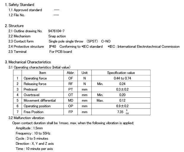 印刷基板用端子還備有獨立端子、直角端子。鼠標開關的型號有: