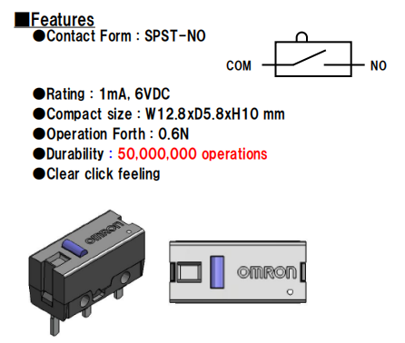 D2FC-F-K(50M)5000萬次鼠標開關
