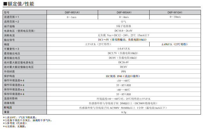 風量傳感器D6F-W01A1