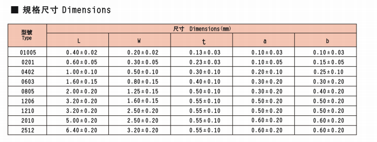 厚膜片式跨接電阻 RS-005系列